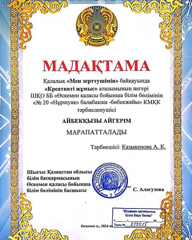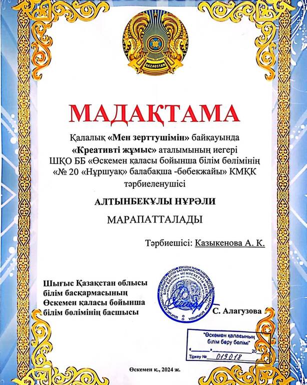 №20 «Нұршуақ» балабақша- бөбекжайы КМҚК